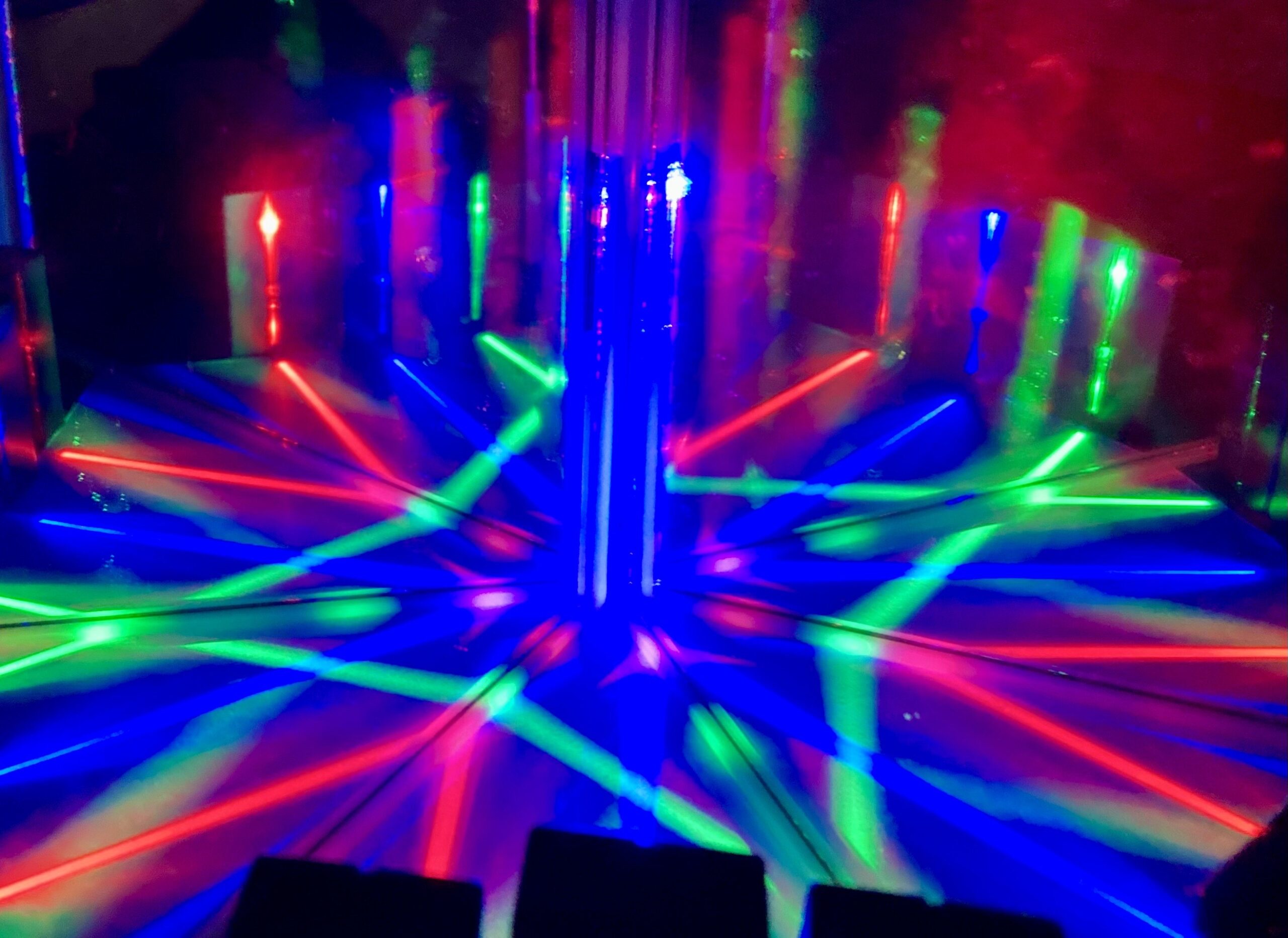 今回の実験では、2枚の鏡と赤緑青のLEDライトを用いて、光をデザインしました。
