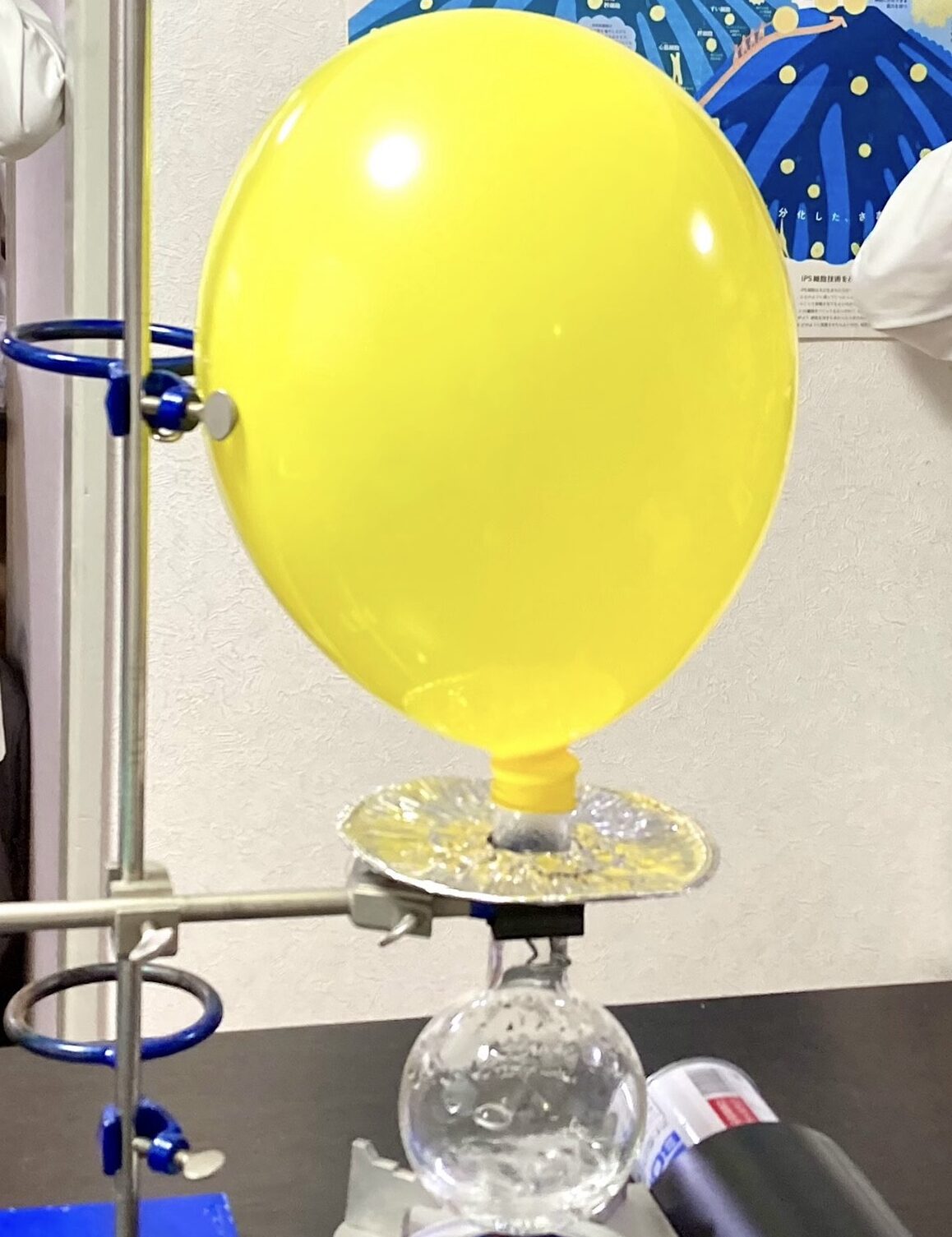 今回の実験では、風船と丸底フラスコとガスコンロを用いて、水が水蒸気になる時の体積膨張を確認しました。